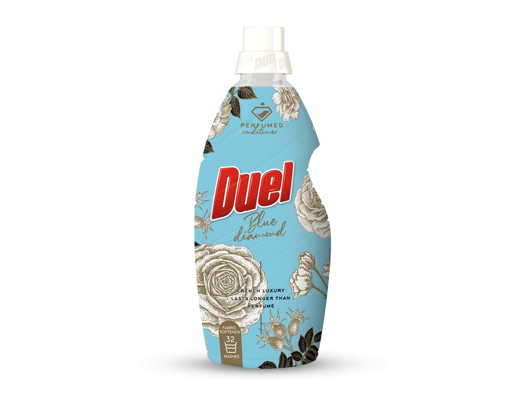Prémiová aviváž Duel Blue Diamond je určena pro všechny, kteří milují luxusní a intenzivní vůně. Díky speciálním parfémovým mikrokapslím uvolňuje vůni postupně a zanechává prádlo svěží a příjemně provoněné po dlouhou dobu. Změkčuje textilní vlákna, usnadňuje žehlení a pomáhá snižovat elektrostatický náboj prádla.