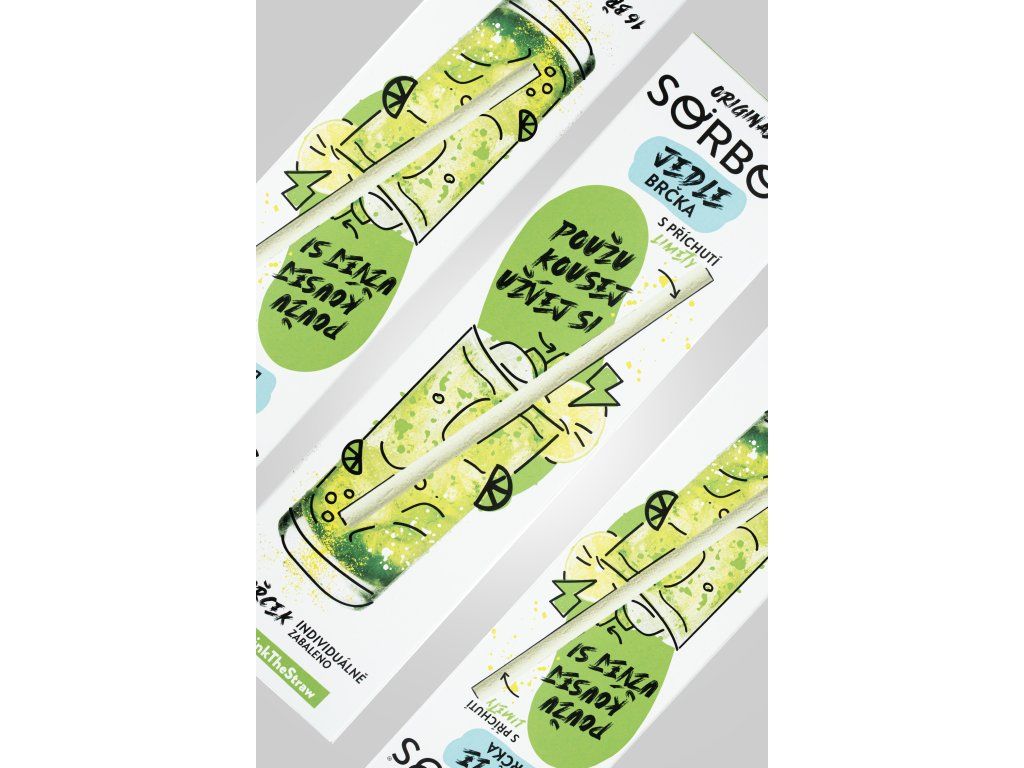 Sorbos jedlá brčka s limetkovou příchutí přinášejí svěží chuť a zároveň řešení šetrné k přírodě. Neobsahují plast, jsou biologicky rozložitelná a po použití je lze sníst.